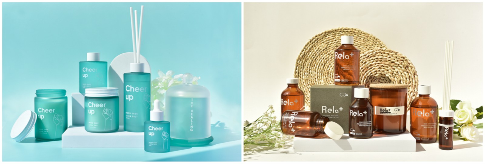 研發(fā)設(shè)計(jì)人員準(zhǔn)備了數(shù)十個(gè)系列樣品。絕大部分樣品都選用亮色,充足的光亮和色彩,令人心情更加舒暢,同時(shí)也恰好迎合了年輕消費(fèi)人群的喜好。比如“治療”系列家居香氛,瓶身有多重色彩,瓶身刻有”WAKE UP”、”CHEER UP”等療愈感字眼,并配有醒來(lái)、拳頭等線(xiàn)描圖,帶來(lái)滿(mǎn)滿(mǎn)的陽(yáng)光活力;比如藥妝環(huán)保系列,選擇藥妝感的容器盛放蠟燭或精油,倡導(dǎo)追求健康生活的生活方式等等。