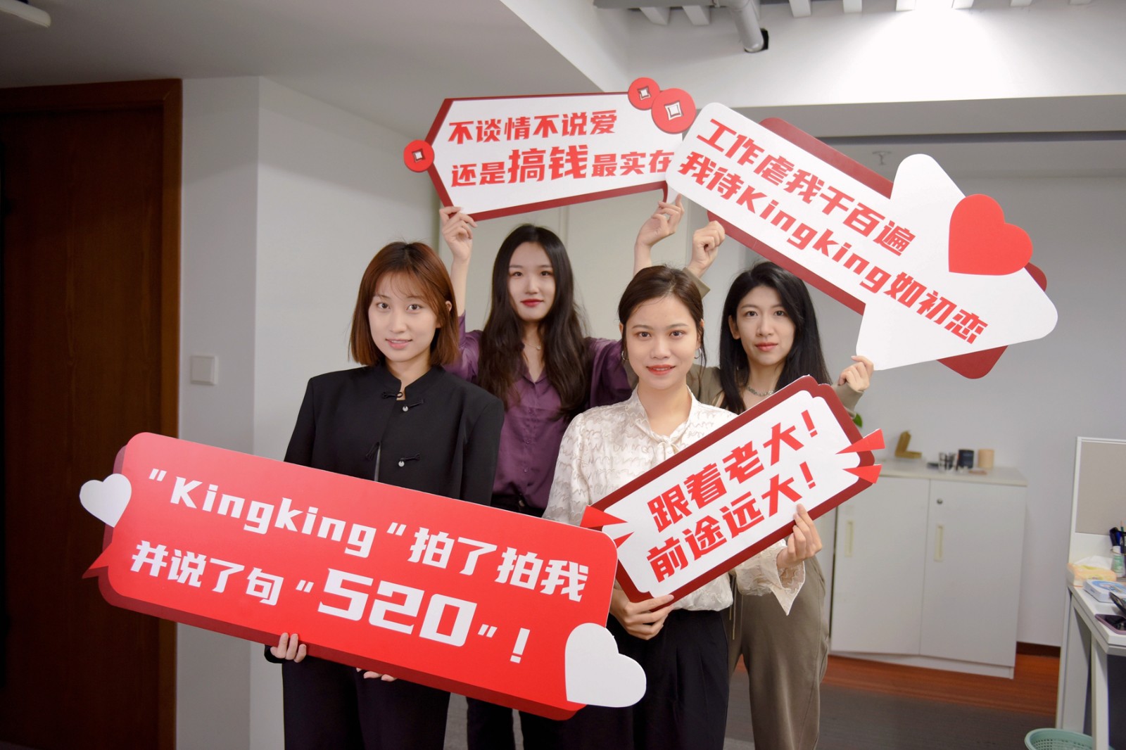 今年“520”花式表白席卷全網(wǎng),青島金王的員工們也拿出了對公司十足的愛意,自發(fā)組織開展“520為愛表白”主題活動,舉牌合影,訴說情誼,表達美好,感謝公司對人才的培養(yǎng)與支持,期待為公司高質(zhì)量發(fā)展凝聚磅礴力量。